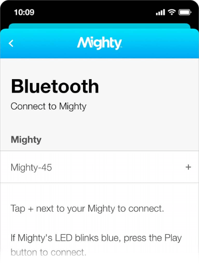 After you download the application and launch it, it will open to a setup manual. Create a Mighty account upfront; it also gives you the option to login through Facebook. Setting up the account will open up a new page showing you possible Bluetooth attachments. Push the "Plus" button on your smartphone screen and press the might's play button to establish a wireless connection.